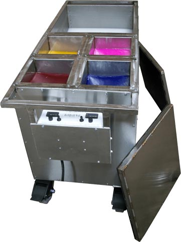 These machines are easy to operate, have simple controls, and are fully insulated on all surfaces to increase the level of safety. The main vat temperature is controlled independently from the other color vats, so each one can be adjusted as necessary.