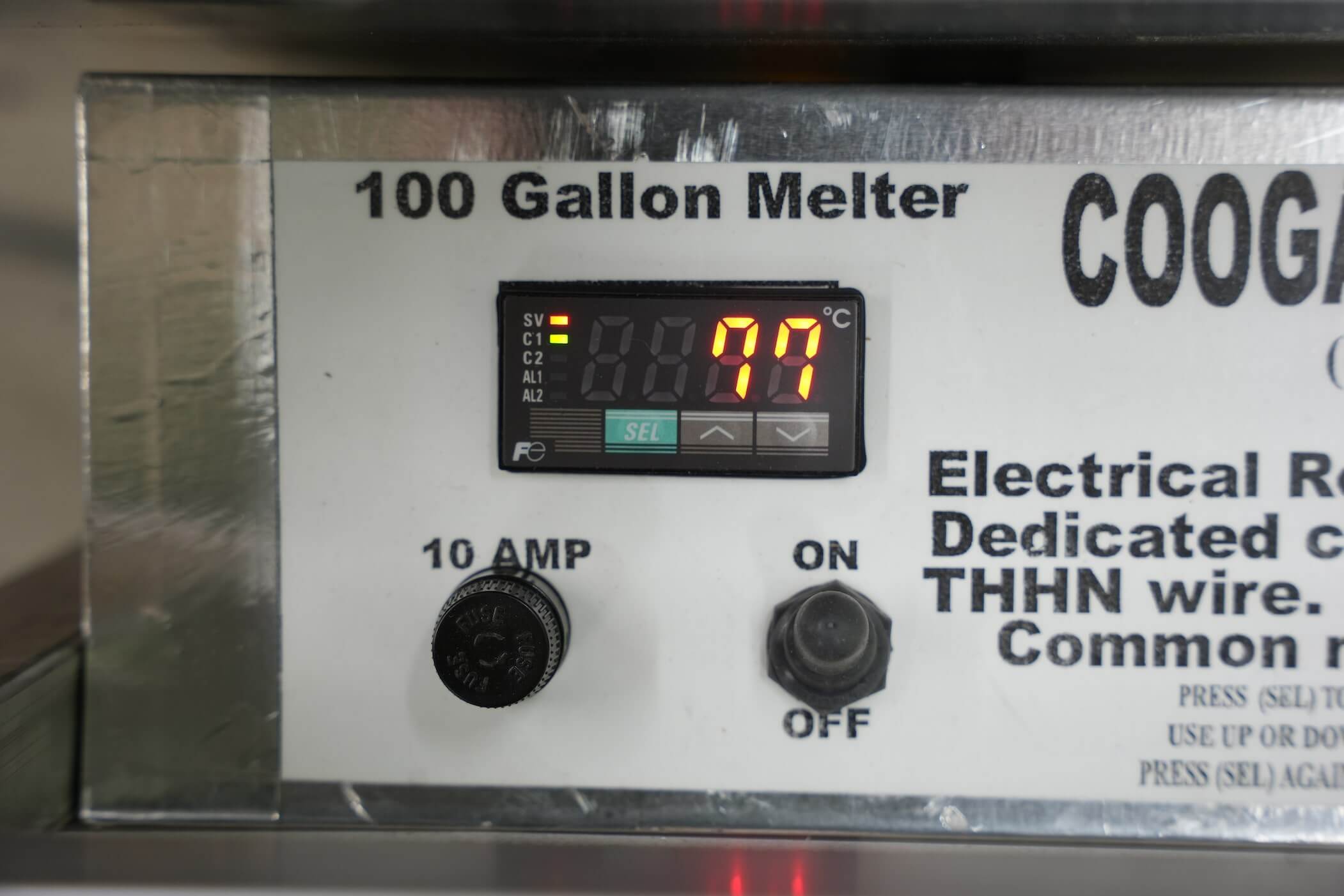 The 100 Gallon Melter is the workhorse of the Coogar MELTER line. It can be used as either a large batch tank or as a bulk tank. Using our advanced direct heat technology, this is the safest, most power efficient melter of its size available.